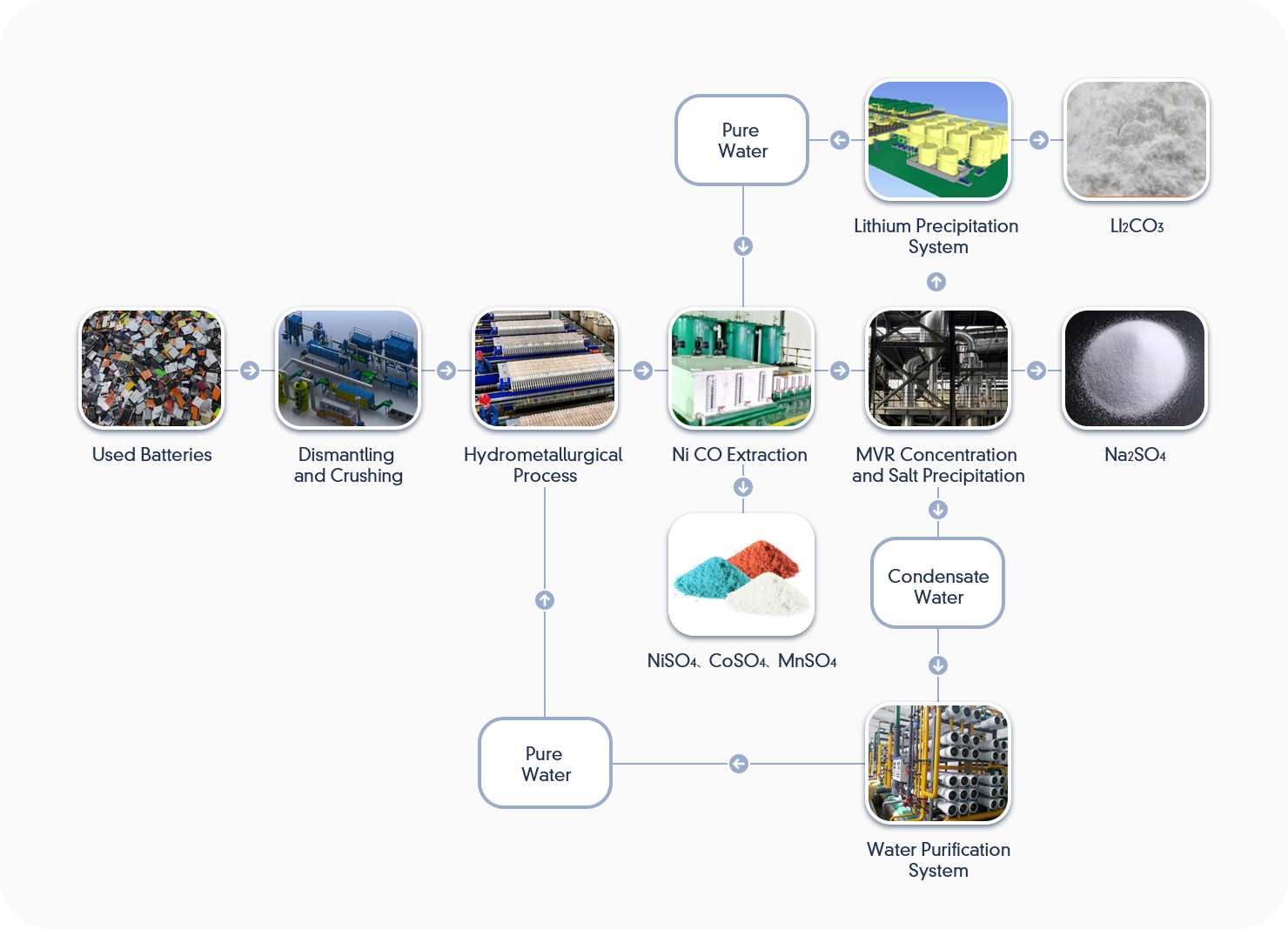 We specialize in the recycling and cascade utilization of retired new energy power batteries, striving to establish a complete closed-loop system from the recycling of waste batteries to the production of finished lithium carbonate. Our business encompasses the research and development, production, procurement and sales, as well as full-chain services for lithium battery recycling.